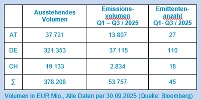 Volumen in EUR Mio., Alle Daten per 30.09.2025 (Quelle: Bloomberg)
